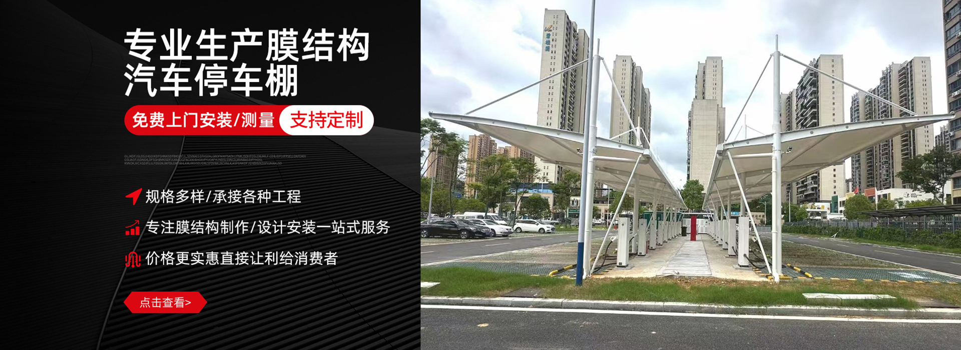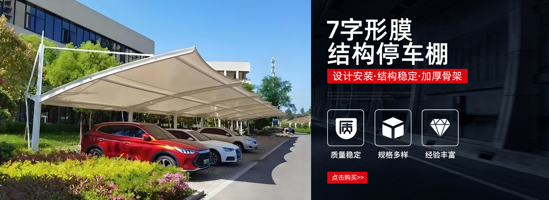 安徽宏盛达新型材料科技有限公司是一家专业从事膜布加工定制,大梁加工定制,膜结构工程施工所需要的配件批发,工程主营:停车棚、膜结构停车棚、公交车停车棚、小轿车停车棚、充电桩车棚、膜结构、膜结构景观棚、膜结构看台、污水池膜结构、园林膜结构、出入口膜结构、走廊膜结构、体育移动推拉棚、游泳池膜结构、推拉雨棚、电动推拉雨棚、各类雨棚等设计、施工、安装和维护!宏盛达凭借雄厚的实力,集方案设计、结构设计、静动力分析、找形裁减设计、加工制作、整体安装和安装维护于一体,我们本着“以诚为本、以质取胜、实现双赢”的经营理念,建立完善质量监控体系,严格按国家标准和技术规范组织设计、制作、安装和维护。本公司以严谨的施工组织,先进的制作安装工艺,过硬的施工队伍,可靠的信誉保障,在质量、价格、服务上占有较大的竞争优势。 因为不同场所适合不同造型的膜结构或雨棚,所以公司秉承免费上门勘测、设计、出图的原则服务每一个客户.咨询电话:13817726639 王经理
