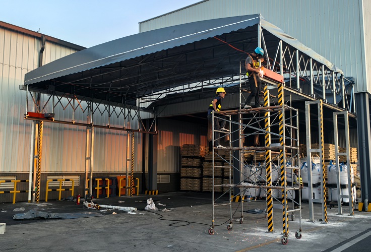 移动推拉棚,广泛用于仓储,展会大排档等遮阳挡雨防晒保温防潮。防违建安徽宏盛达新型材料科技有限公司【13817726639】安徽膜布大梁加工厂丨安徽车棚材料加工厂丨安徽车…